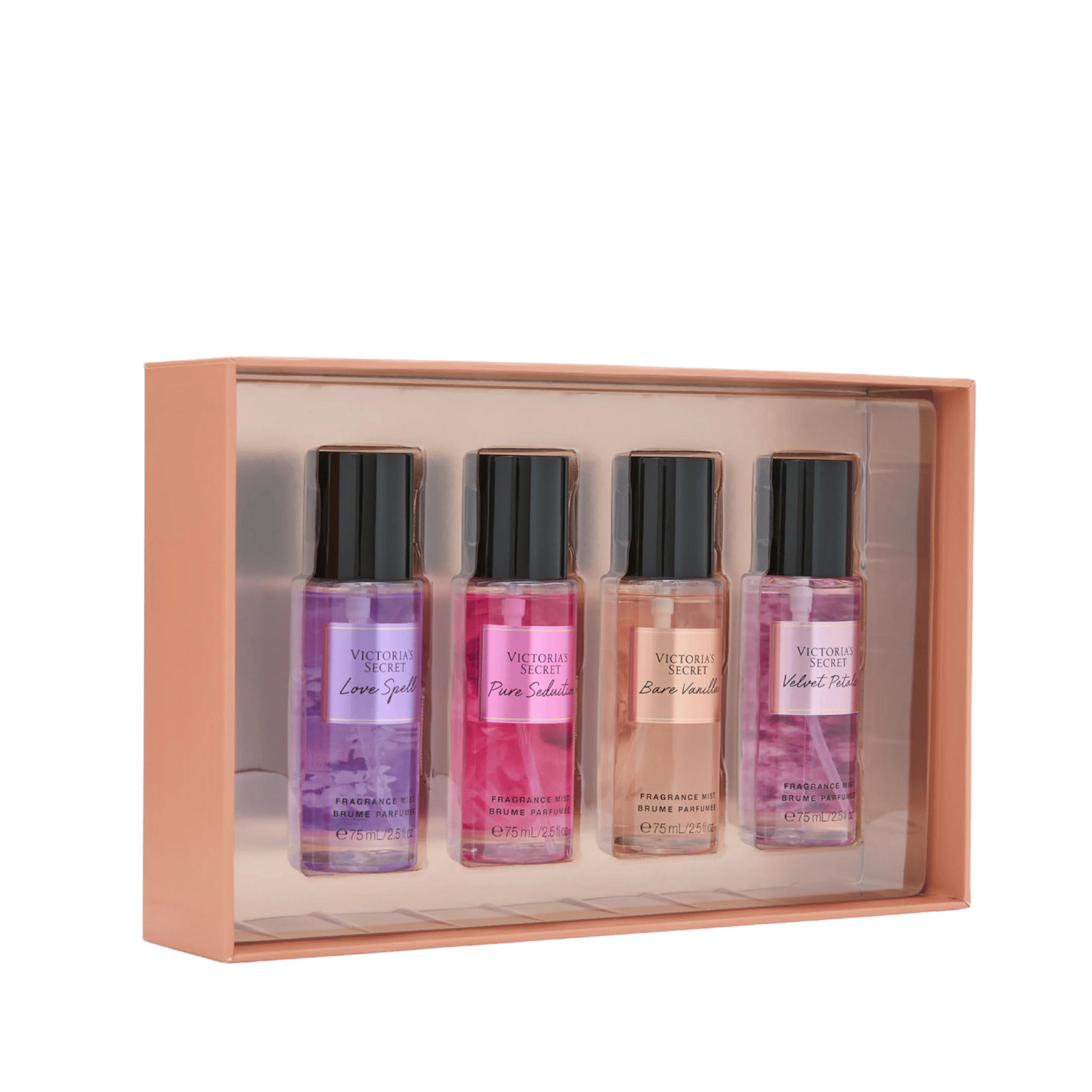 Experience a tour of our best mist scents, in ultra-giftable minis. Includes Love Spell, Pure Seduction, Bare Vanilla, et Velvet Petals.