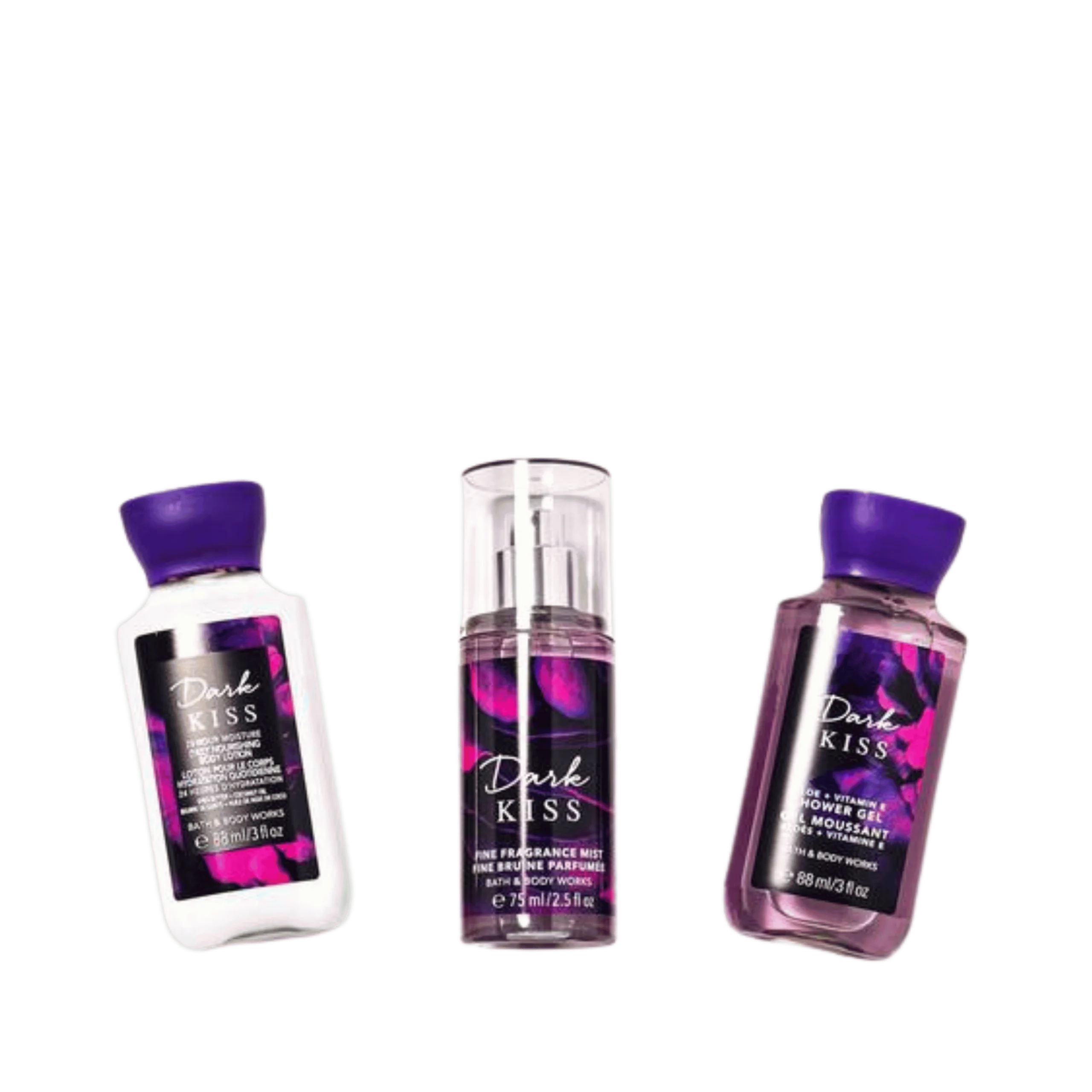 - Comprend un gel douche format voyage (3 oz liq.), une lotion pour le corps (3 oz liq.) et une brume parfumée (3 oz liq.).