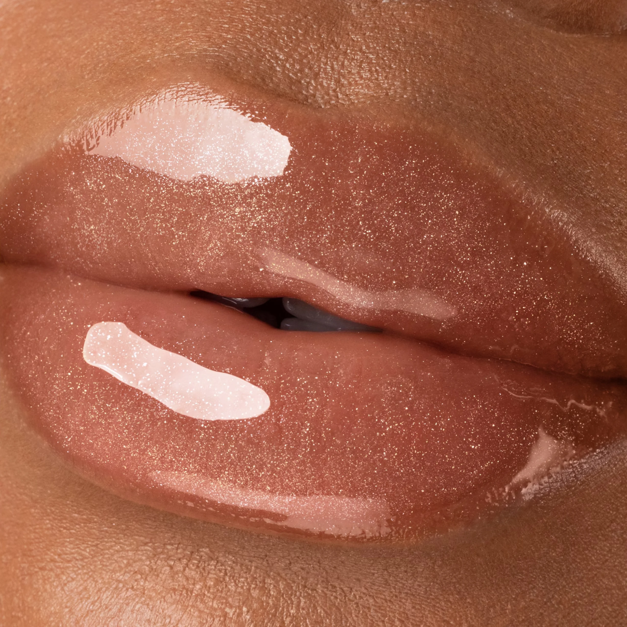 Ce nude transparent et scintillant enveloppe les lèvres d’une hydratation profonde et d’un éclat glossy, sans effet collant !