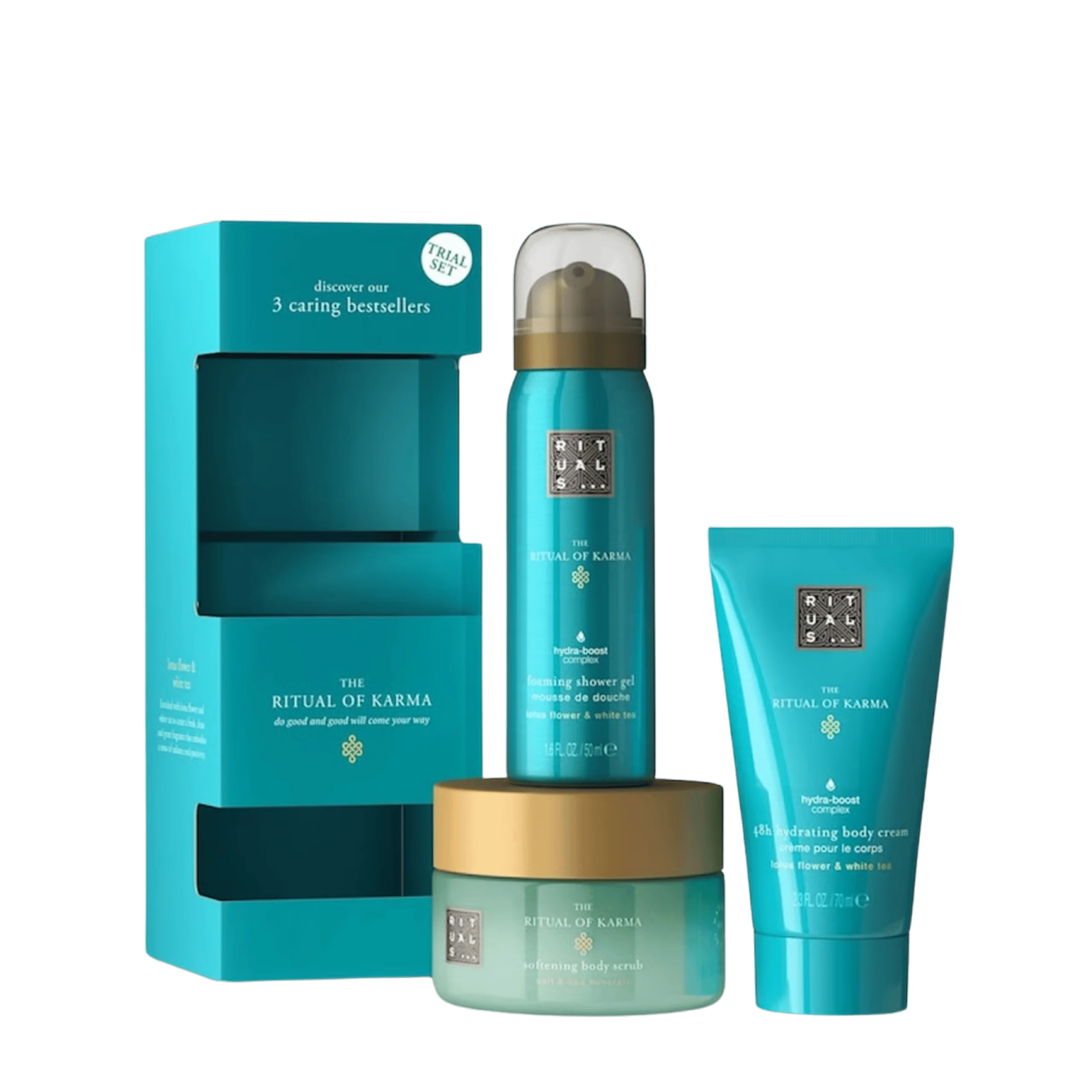Le Coffret cadeau The Ritual of Karma est la manière idéale de découvrir les produits Rituals. Ce coffret est un cadeau parfait pour vous-même ou vos proches, combinant trois best-sellers de la collection Rituals :