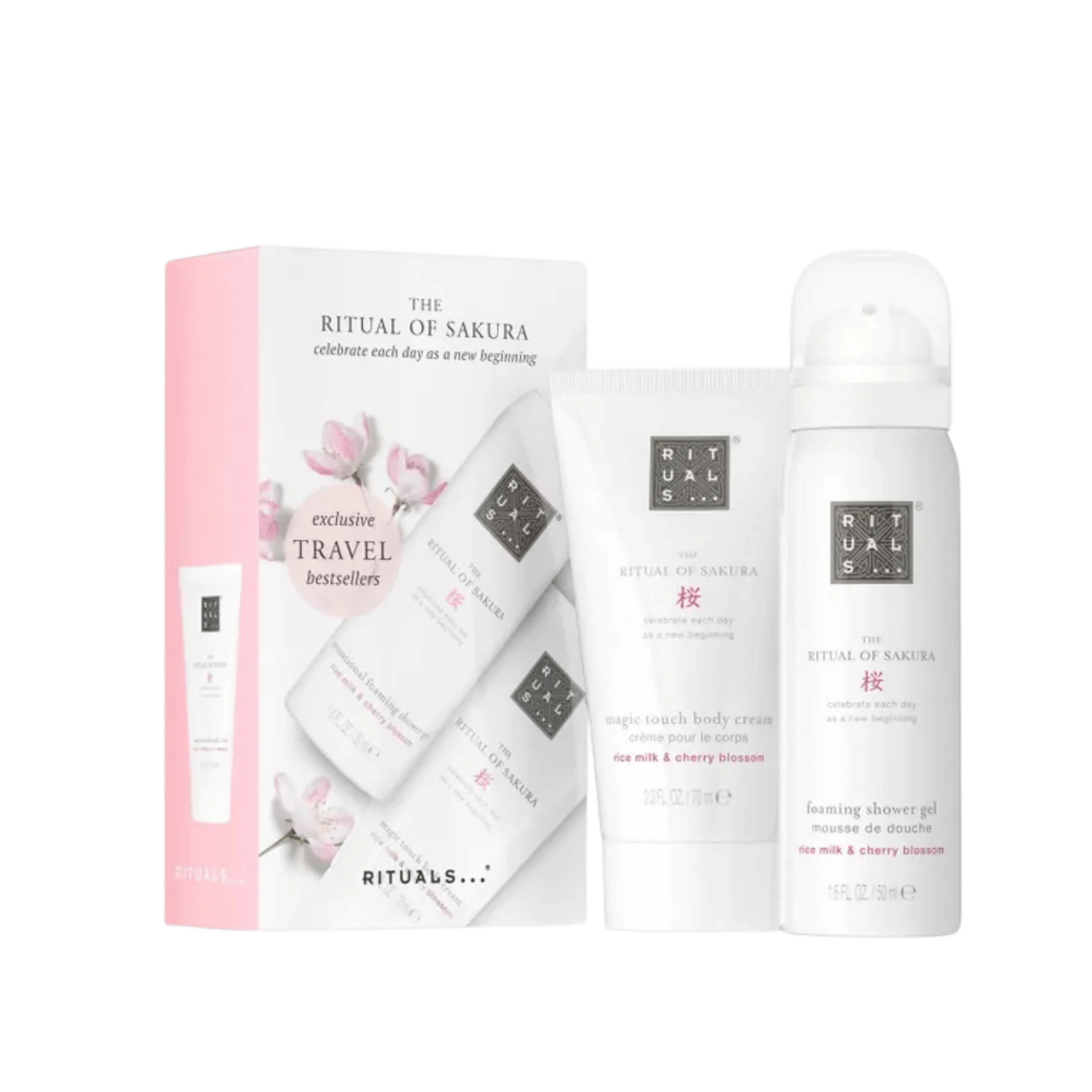 Qu’il s’agisse d’une escapade rapide ou d’une pause plus longue, emportez le parfum des fleurs de cerisier avec vous, où que vous alliez, Grâce à ce coffret de voyage pour le bain et le corps de The Ritual of Sakura.
