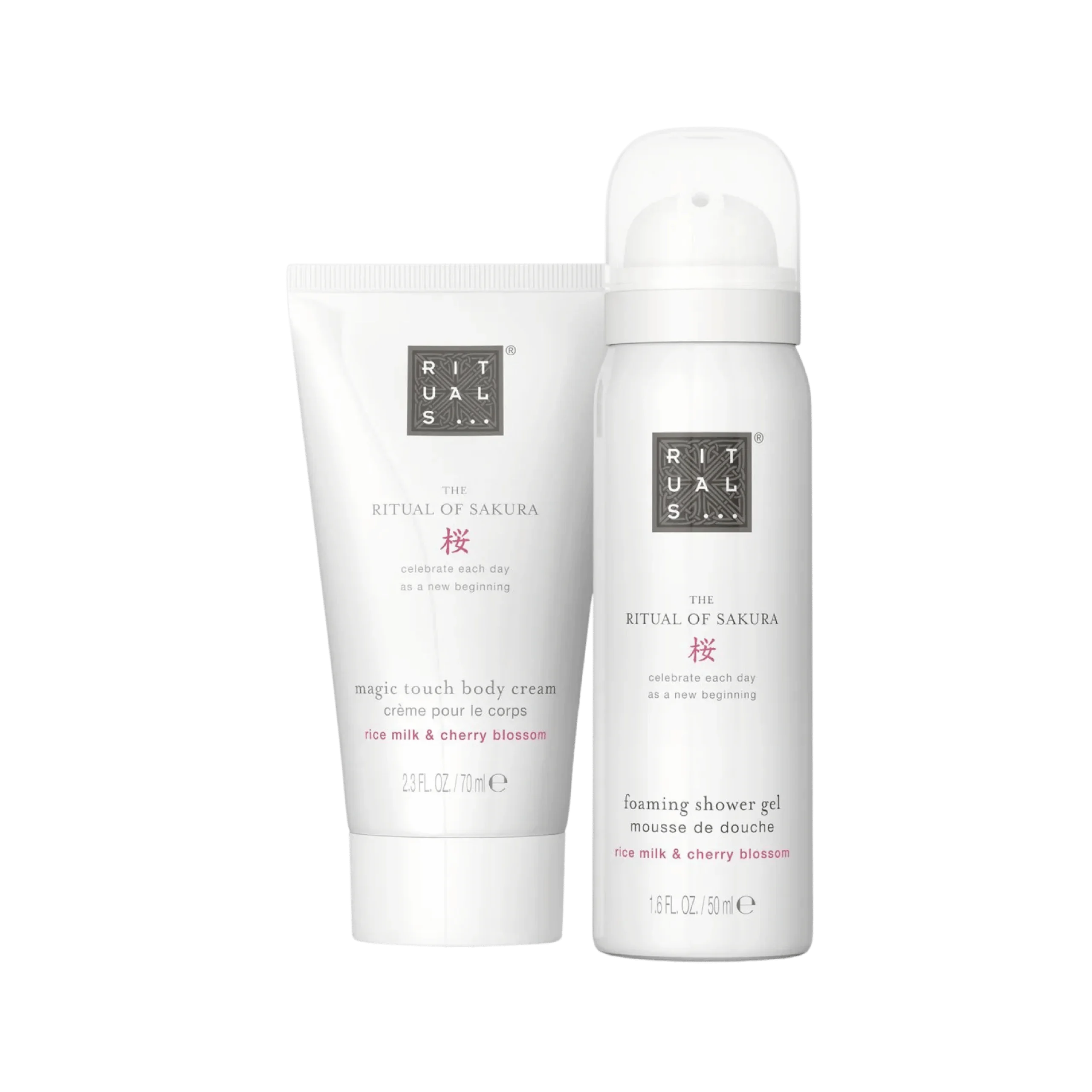 Composé de notre mini-mousse de douche et de notre crème nourrissante pour le corps, ce duo regorge d’arômes renouvelés de fleurs de cerisier et de lait de riz.